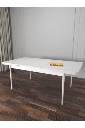 سلسلة MNZ-Barni Plain White Extendable Dining and Kitchen Table Set مع 6 مقاعد - بارني الارضي-06
