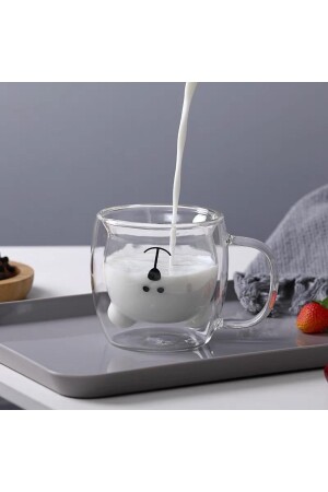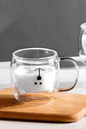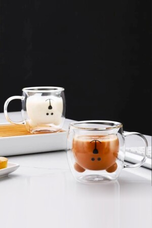 م.ن.ز-2 قطع دب Teddy Bear Design Double Walled Glass Mug 250 مل، دبلو دفة دبلو دفة مع المقبض - تصميم دبلو دفة - تصميم بنية مزدوجة د