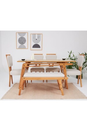 طاولة مُوسعة سلسلة MNZ-Astera + 6 قطع ثياب وجه الطفل المدخن المطبخ غرفة المعيشة غرفة الطعام مجموعة