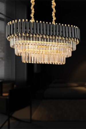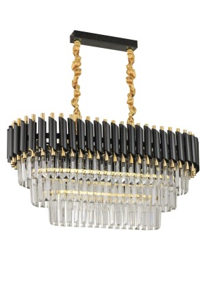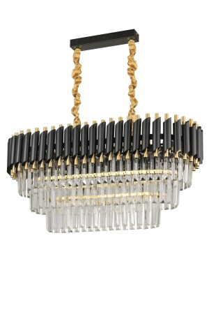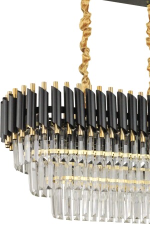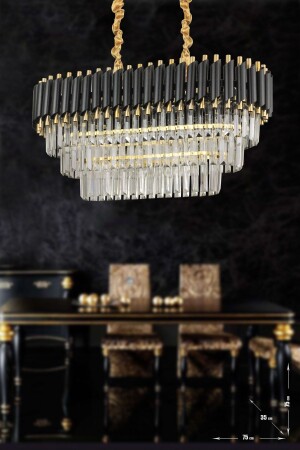 MNZ-Palmira 75x35 سم كريستال الحجر 3 طبقات طاولة تناول الفخامة شمعة مجموعة من 6 - (الذهب الأسود) PT-800-70G-3