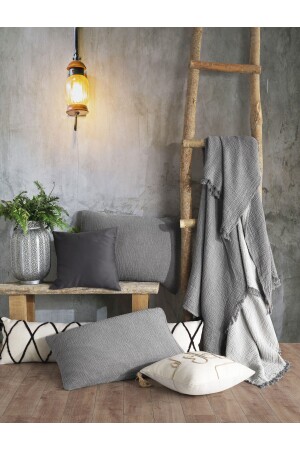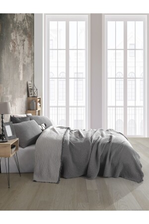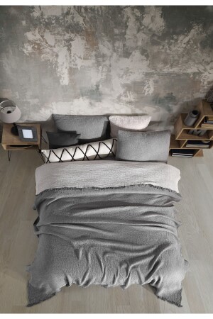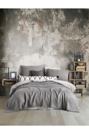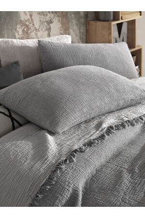 MNZ-Pastel Gray 4 Layer Multi Muslin 100% القطن غطاء سرير مزدوج 200x240cm BMB - 7300