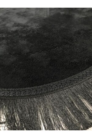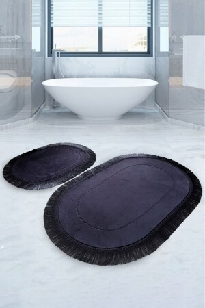 Lazer Kesim Peluş 2'li Oval Siyah Banyo Paspas Takımı