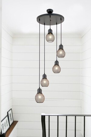 Pare Model Modern Spor Siyah 4'lu Glop Füme Camlı Avize