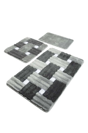 MNZ-Pıazza Gray 3 Piece Set Toilet Set حمام المفتاح المنتهية السجاد