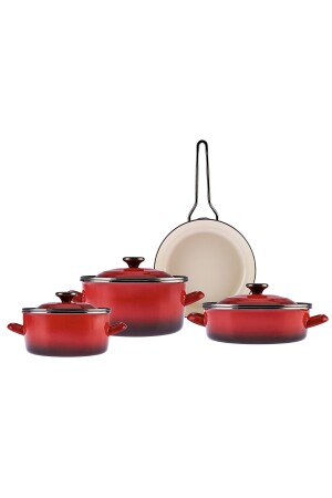 (MNZ-Pietra) 7 قطع (Enamel Cookware Set) أحمر 600. 15.01.2771-1