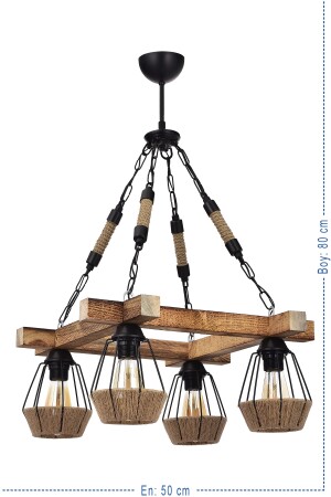 MNZ-PİNA الخشب 4 قطعة حبل الرفاهية معلّق ضوء الشنارة (الارتفاع: 80 سم) ((الربع: 50 سم) مع قاعدة E27