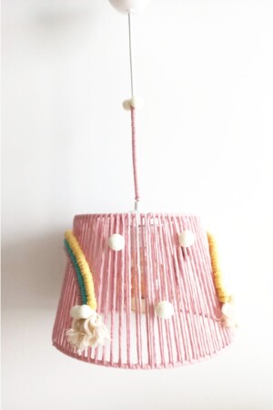 MNZ-Pink Macrame String Wrapped Rainbow Applied Ecru Pompom تصميم غرفة الأطفال و الأطفال شمعة 153VZ