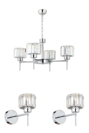 MNZ-Plain 4 قطع كروم مزق 3 قطع كريستال وحجر تصميم عصري كريستال غرفة المعيشة شمعة-سكوب مجموعة 7000-1146-10-04-03