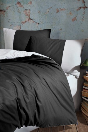 MNZ-Plain Black Gray 100% Cotton Ranforce مضاعفة مضاعفة الجانبية غطاء القماش المجموعة 200x220 CTNTPLSG20