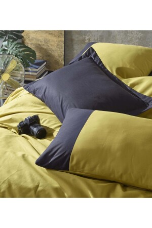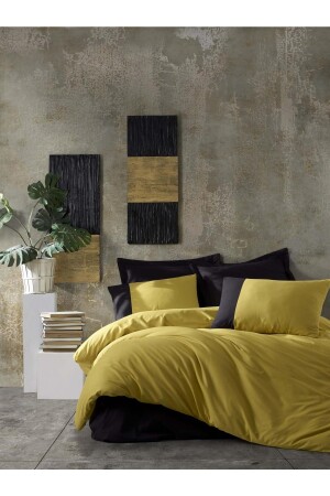 MNZ-Plain Ranforce Mustard Black King Size Duvet Cover Set CBPLAIN10902