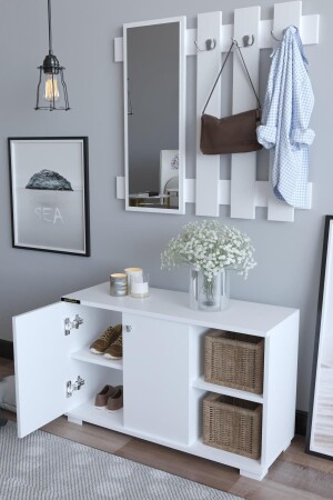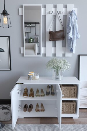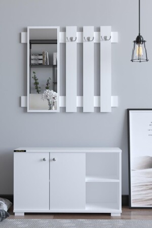 MNZ-Plus مرآة غرفة الملابس حذاء رف معطف رف ومدفوع الجدار - أبيض / أبيض