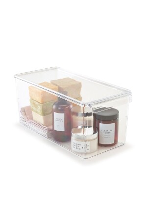 منظمة مكعب MNZ-Lid مرئية ، حاويات منظمة بلاستيكية مع غطاءات للاستخدام الشامل. يمكن استخدامها في خزانات المطبخ والقوافير