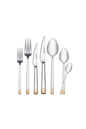 محتوى منتج MNZ: 12 ملعقة طعام، 12 شوكة عشاء، 12 سكين عشاء، 12 ملعقة حلوى، 12 شوكة حلوى، 12 سكين حلوى، 12 مل