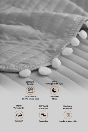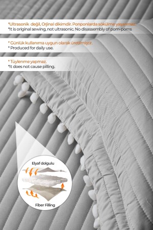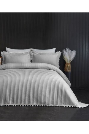 MNZ-Pompom مضاعفة 100% قطن غطاء السرير (Pique) مجموعة الرمادي