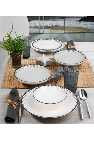 (MNZ-Matte) عشاء أسود / فطور مجموعة 30 قطعة لـ 6 أشخاص dmtaks202330