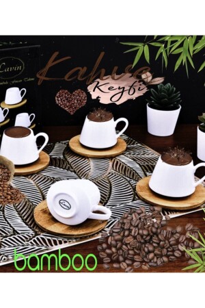 Sunum Tabaklı- Kahve Yanı Bardaklı 18 Parça 6 Kişilik Kahve Fincan Takımı- Seti