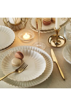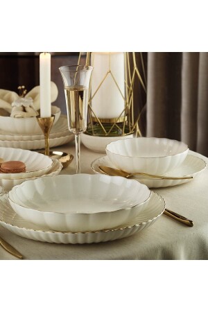 MNZ-Porcelain Bone Luz Form 52 Piece Dinner Set Gold Mesh Bnlzf52yt20 BNLZF52YT20