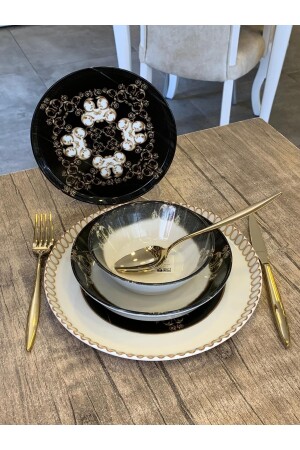 (MNZ-Matte) عشاء أسود / فطور مجموعة 30 قطعة لـ 6 أشخاص dmtaks202330