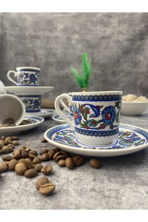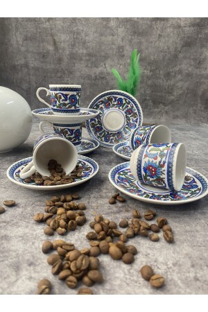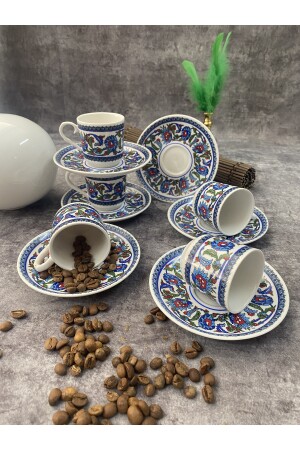 MNZ-Porcelain Topkapı طلاء نمط كوب قهوة تركية مجموعة 6 أشخاص 12 قطعة topkapı01
