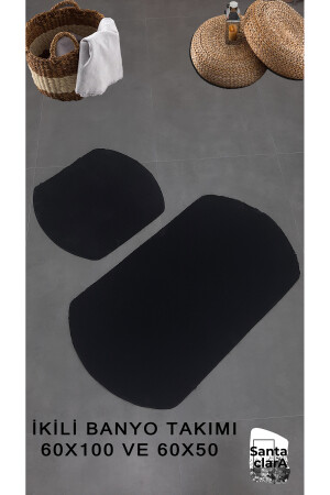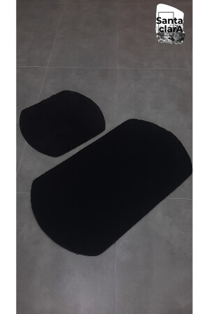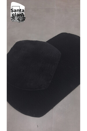 Lazer Kesim Peluş 2'li Oval Siyah Banyo Paspas Takımı