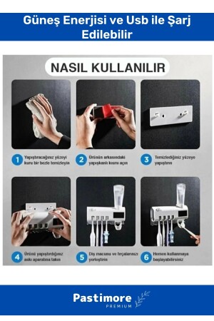 MNZ-Practical USB Rechargeable and Solar Powered Automatic Toothpaste Squeezer 4 Pieces حامل فرشاة الأسنان تم تفكيكها مجموعة التحلية السهلة لتركيب