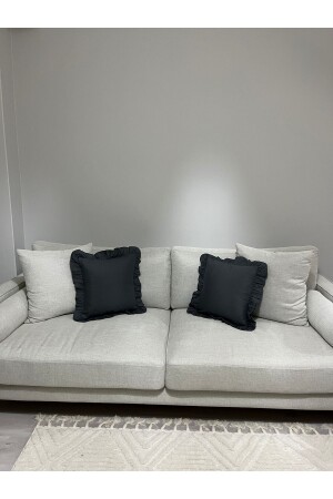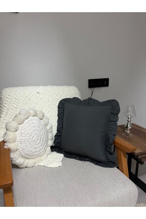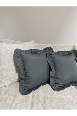 MNZ-Premier Duck Linen Ruffled Anthracite Gray Throw Pillow Case 40x40 سم