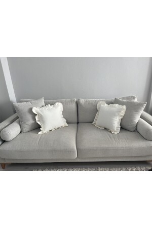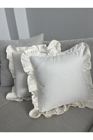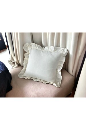 MNZ-Premier Duck Linen Ruffled Cream Cushion Cover 40x40