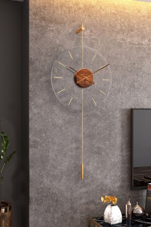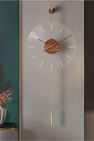LED'li Kristal Cam Tiktok 60 cm GOLD- Modern Dekoratif Sarkaçlı Metal Duvar Saati