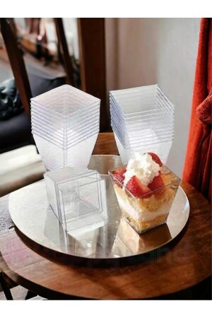MNZ-Prism Mica بلاستيكي مربع حاوية مكعب عرض كأس 200cc 20 قطعة ميكا Prism