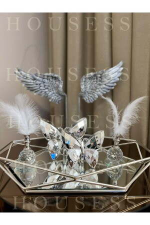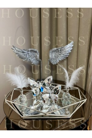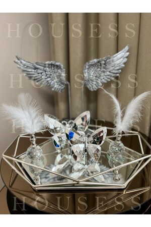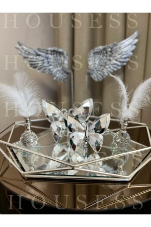 Lüx Kare Kelebek Aksesuarlı Paslanmaz Çelik 6’lı Gümüş Kahve, Çay, Dekoratif Sunum Servis Tepsisi MZKBK667