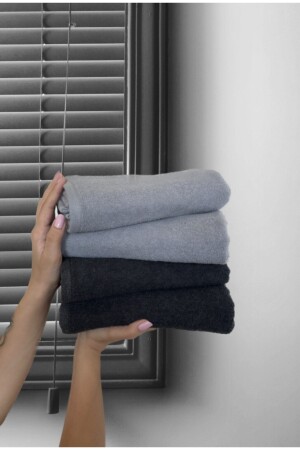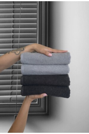MNZ-2 الرمادي + 2 أسود إجمالي 4 مناشف حجم 50x90 سم إيبونج (مناشف عادية) بدون نمط تستخدم في حمالة الحلاقة ومنازل