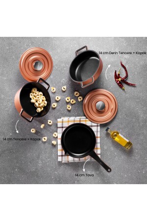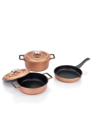 MNZ-Schafer Pro Cast Mini Cast Iron Pot Set 5 قطع - Rosegold 1 وعاء عميق 14 سم + غطاء 1 قطعة وعاء 14 سم 1 قطعة وعاء 14 سم + غط