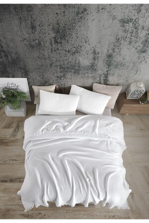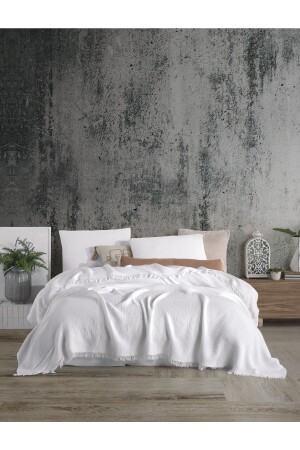 MNZ-Pure White 4 Layer Multi Muslin 100% Cotton Double Bedspread 200x240cm BMB - 7300