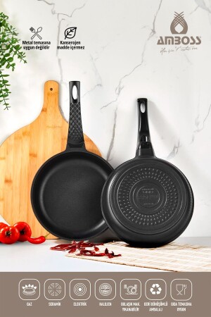 مجموعة من الـ MNZ-Amboss 2 Piece Quartz Cast Iron Pan Set (Black) Black 3 طبقات من ملابس التيتانيوم 2 سنوات ضمانة مضادة للخدشة غير قابلة