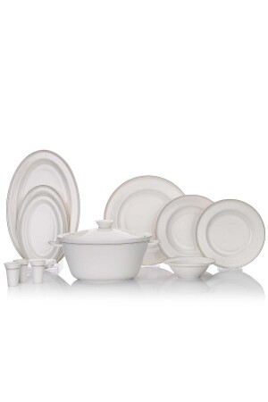 مادة: الصين العظمية محتويات المنتج: - 12 طبقة 27 سم - 12 طبقة عشاء 22 سم - 12 طبقة كعكة 20 سم - 12 طبقة حساء 14 سم -