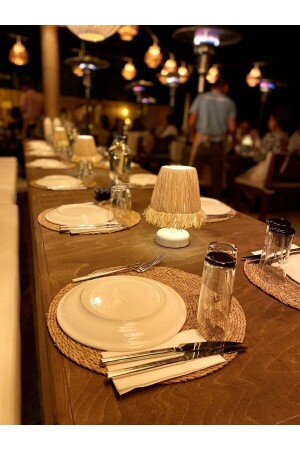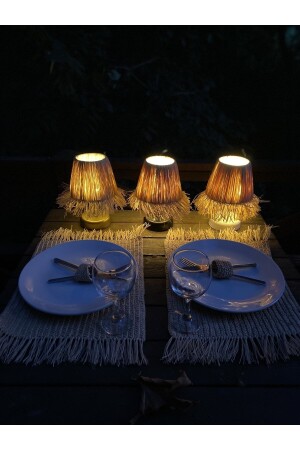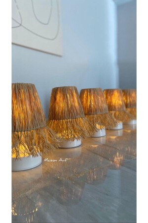 MNZ-Raffia & Wicker Table Top Wireless Battery يعملون على إشعال المصابيح المظلّب الأبيض المُحاط M09