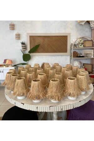 Abajur Başlığı Hasır Krem (22CM) Ea98