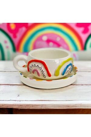 MNZ-Rainbow صنع يدوي كوب قهوة تركية مزدوجة كوب قهوة صوص قوس قزح تركية ملونة