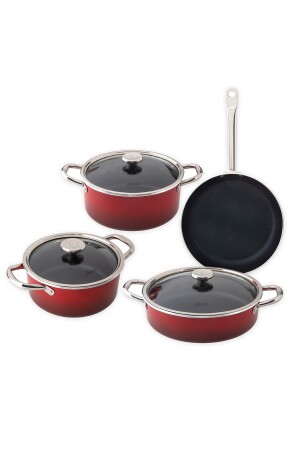 (MNZ-Rainbow Red 7 Piece Bio Diamond Cookware Set 500) 01. 01. 5757