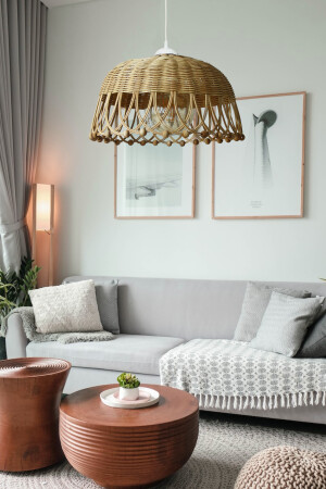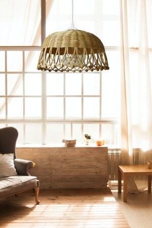 MNZ-Rattan Bamboo Wicker pendant lamp شمعية قطر: 35 سم ارتفاع: 20 سم bel078