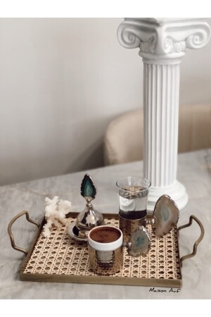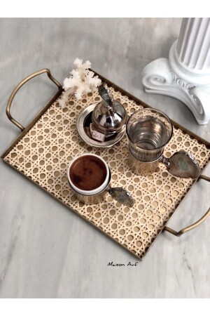 Lüx Kare Kelebek Aksesuarlı Paslanmaz Çelik 6’lı Gümüş Kahve, Çay, Dekoratif Sunum Servis Tepsisi MZKBK667