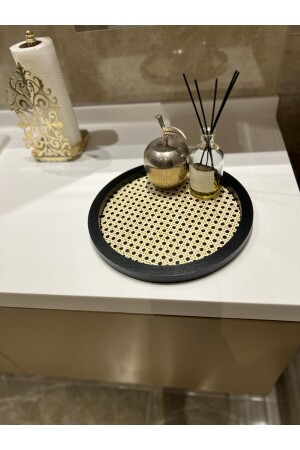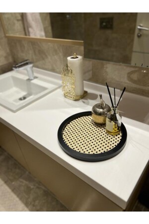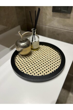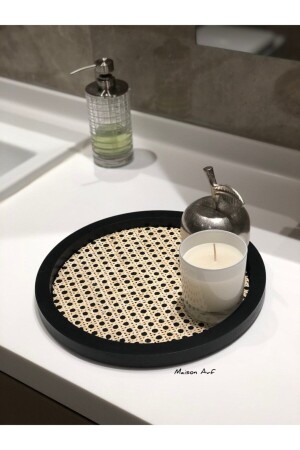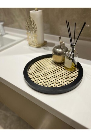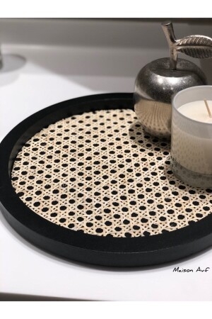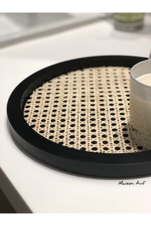 MNZ-Rattan Hazeran Round Tray Black (100% HAZERAN طبيعي) M021