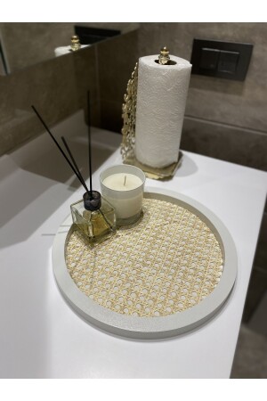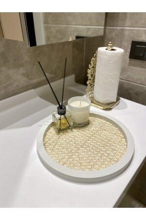 MNZ-Rattan Hazeran Round Tray White (100٪ حازران طبيعي) M135