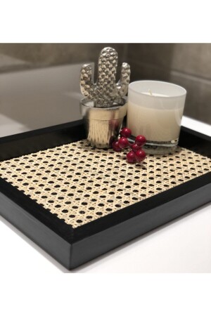 MNZ-Rattan Hazeran Tray أسود مستطيل (100% HAZERAN طبيعي) M016