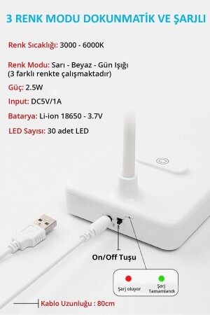 مـنز-تحميل - 3 ألوان لون (أصفر أبيض وضوء النهار) مصباح الطاولة اللمسية. يمكنك توجيههه كما تريد مع الكابل المرن. يتم