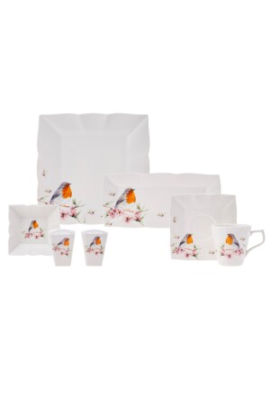 MNZ-Modern 45 Piece بامبو البورسلين الإفطار المعدل لـ 6 أشخاص TR3807