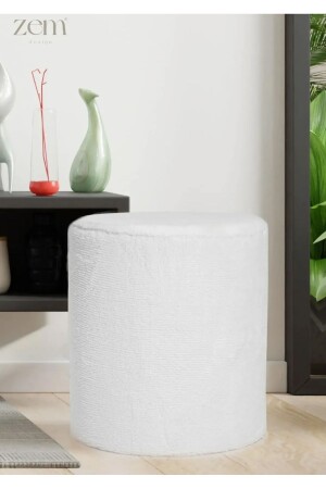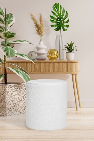 MNZ-Manual Made Off-White Tedy Fabric Cylinder Decorative Pouf Bench (من صنع يدك خارج الأبيض المملء) ، والتي تتميز بالأنسجة