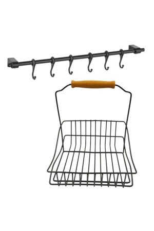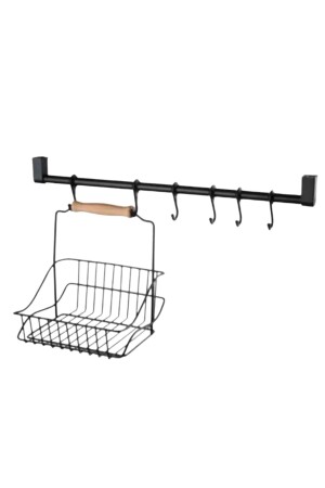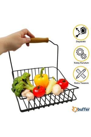 MNZ-Retro المعدة الحديدية المعدة لتنظيم السلة المطبخة مع المقبض الخشبية السوداء