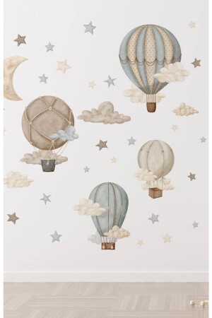 MNZ-Retro Balloons Clouds غرفة الأطفال مجموعة الملصقات الجدارية