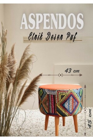 Gürgen Ahşap Retro Ayak Dekoratif Krem Peluş Puf Tabure Bench Koltuk Sandalye